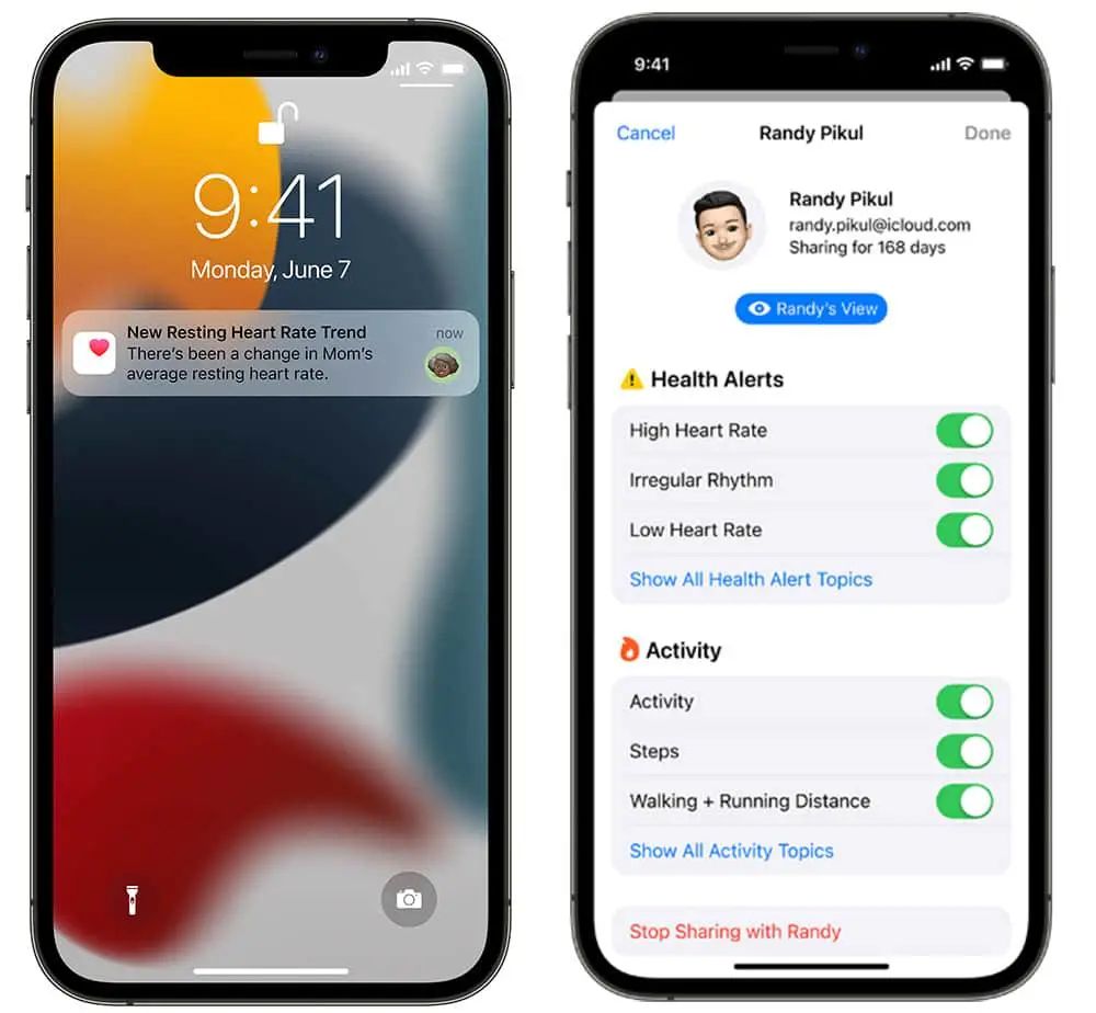 当然,所有共享的信息都必须经过你和家人的同意,共享的信息只会安全的保存在设备上,苹果也没有办法看到。